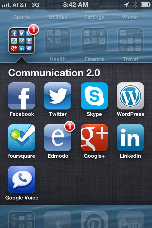Since I don’t have unlimited text messages and I don’t want my personal cell number going out to the world, I’m using the Google voice app to gather voice messages and texts. Besides the auto-response, I’ve also rearranged the apps on my phone into a folder called “Communication 2.0” in hopes of having all my messages go there.